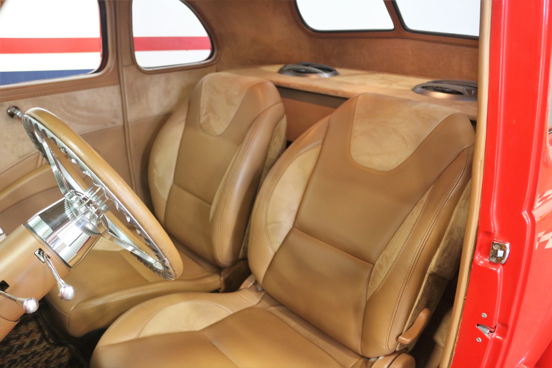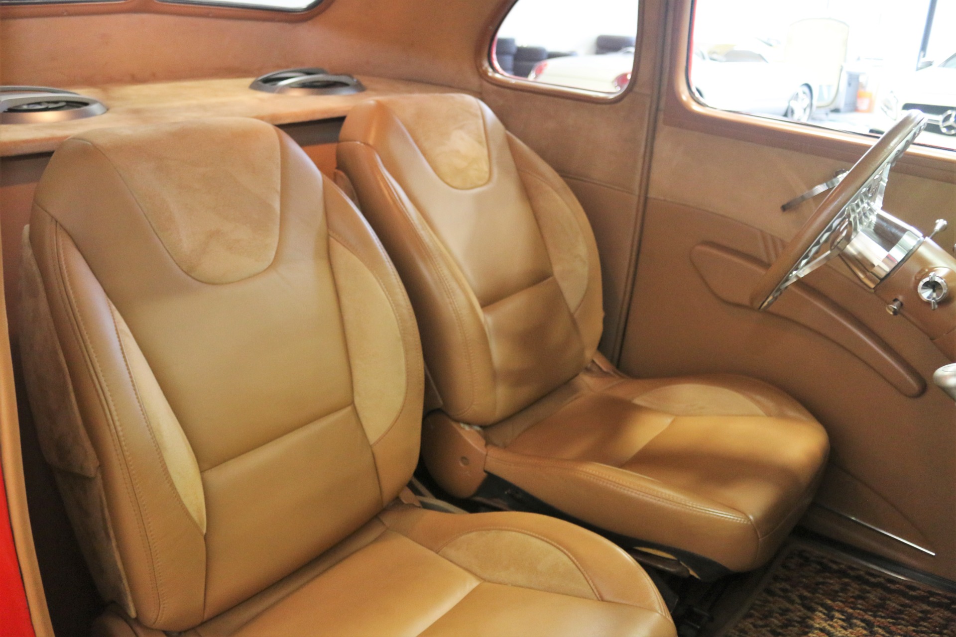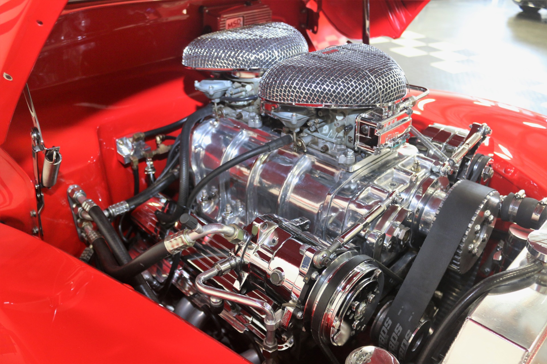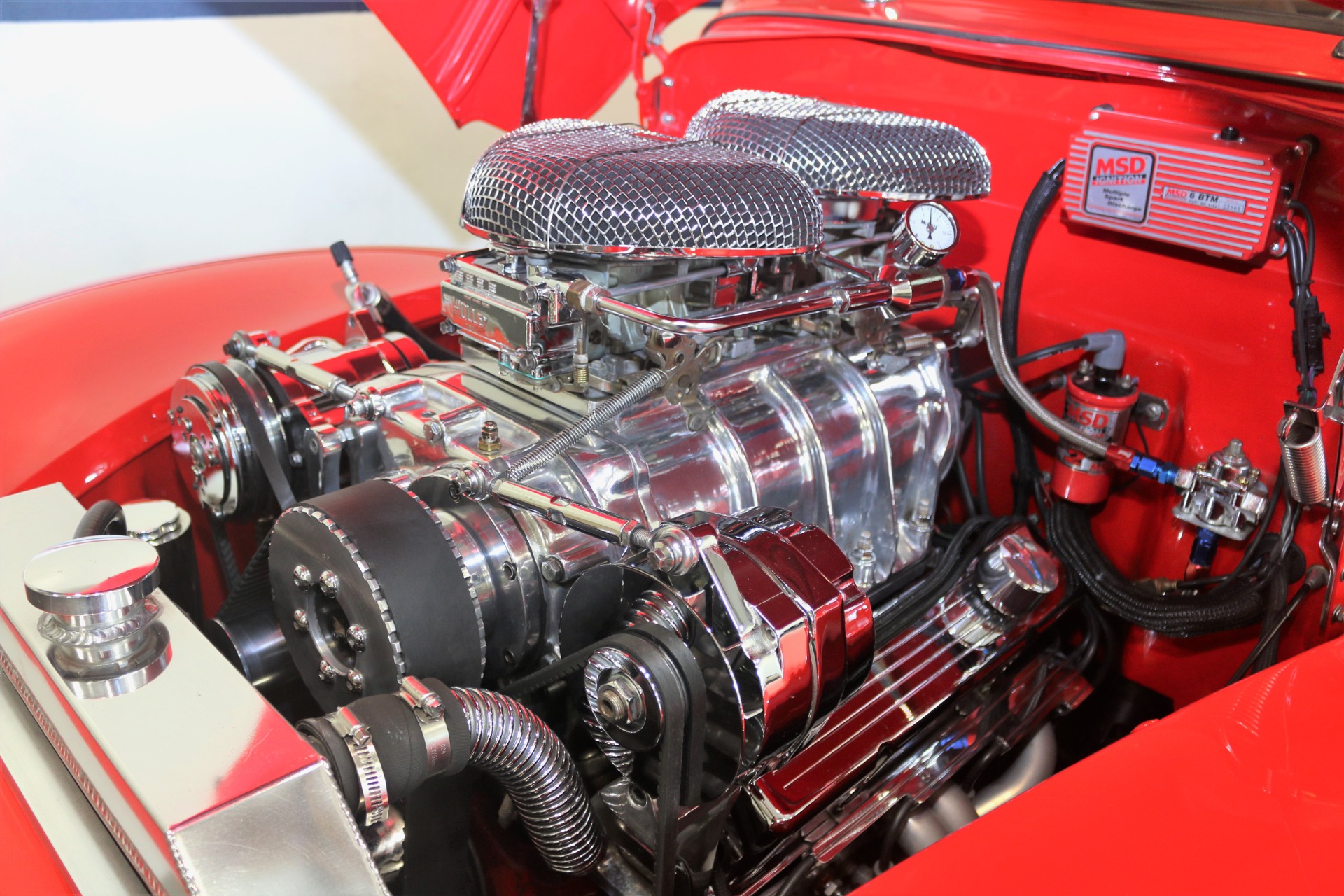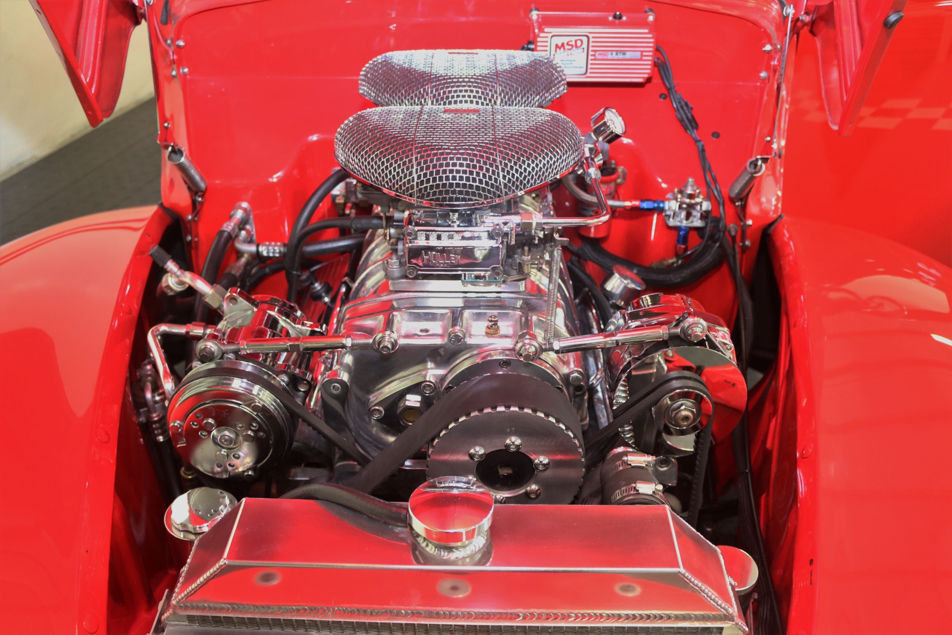 383 CID. Engine setup at 7.5:1 for the Blower. Built Turbo 350 Automatic Transmission for Engine. Edelbrock Air Cleaners. Dual Holley 4BBL Carburetors. Polished 6-71 Blower Case and Underdrive Pulley. Electronic Ignition Curved for Engine to Run on Pump Gas. MSD Electronic Ignition Controller. Polished Aluminum Valve Covers. Chrome and Polished Engine Accessories. Aluminum Radiator with Electric Fan. Block Hugger Headers with Dual Exhaust. Mustang II Front Suspension. Power Rack and Pinion Steering. Power Front Disc Brakes. Cross Drilled and Slotted Rotors. Ford 9 Inch Rear Axle. Upgraded Front Sway Bar. Full Custom Upholstery. Bucket Seats. Tilt Steering Column with Polished Banjo Steering Wheel and Leather Half Grip. Custom Dash Insert with VDO Gauge Package and Auxiliary Boost Gauge. SONY AM/FM/CD/USB/AUX Radio. Vintage Air Conditioning. Lokar Shifter. Power Windows. Filled Cowl Vent, De-Trimmed, and Smoothed Bumpers. All Steel Body and Panels. Polished 17 Inch Wheels. If you are in the market for that special car then come to our showroom in San Ramon, CA. Make your dreams a reality, call the USA Hot Cars Team Today