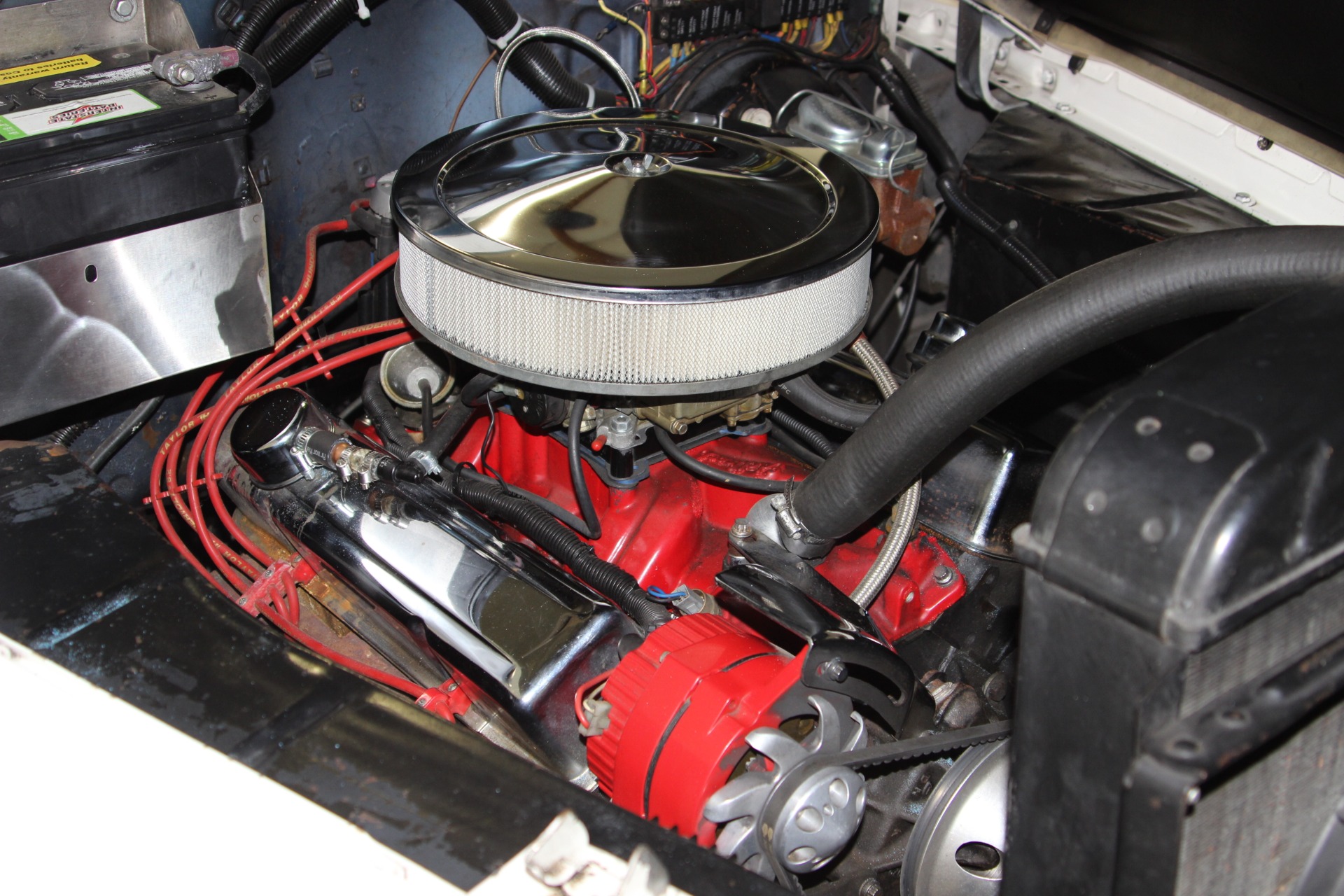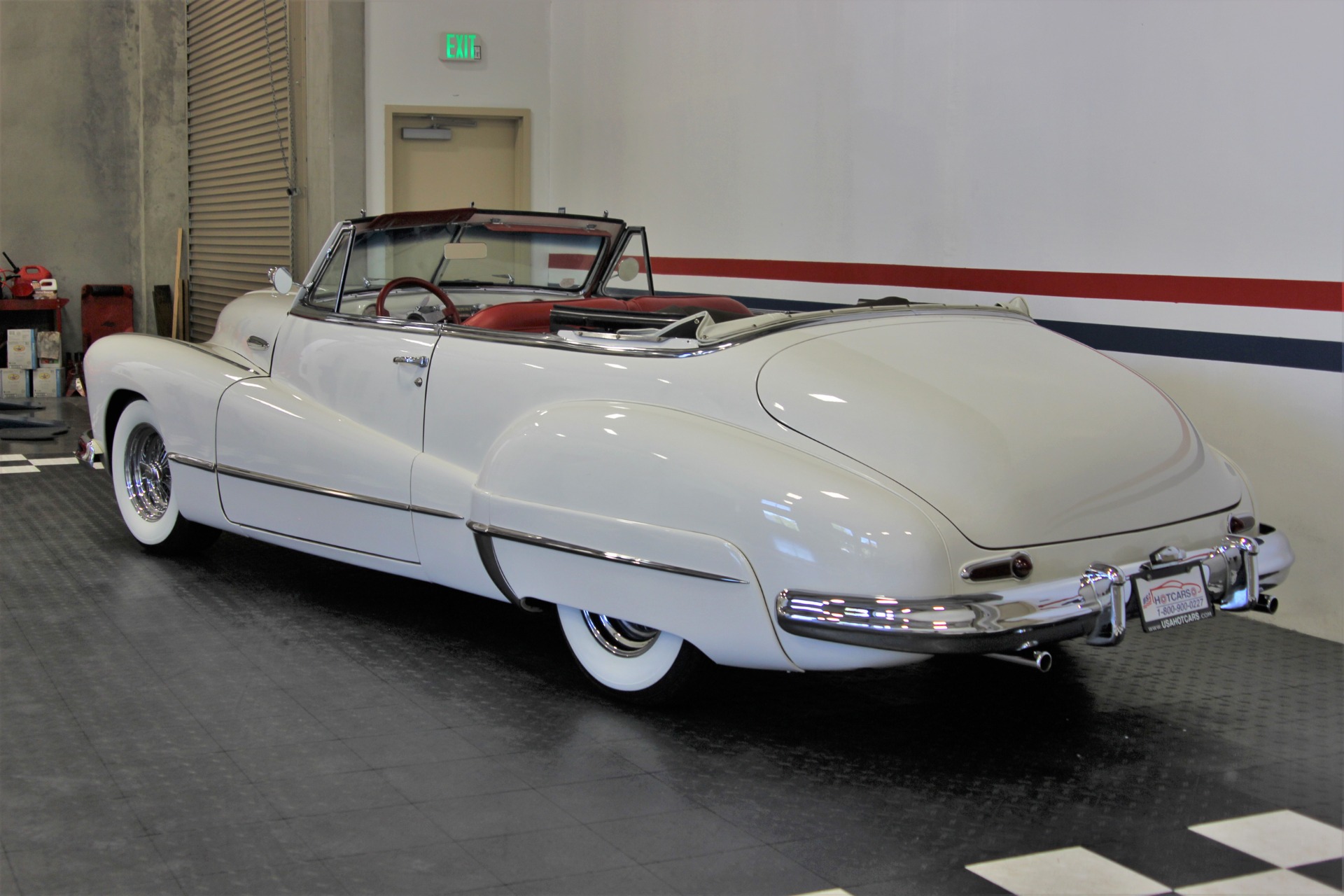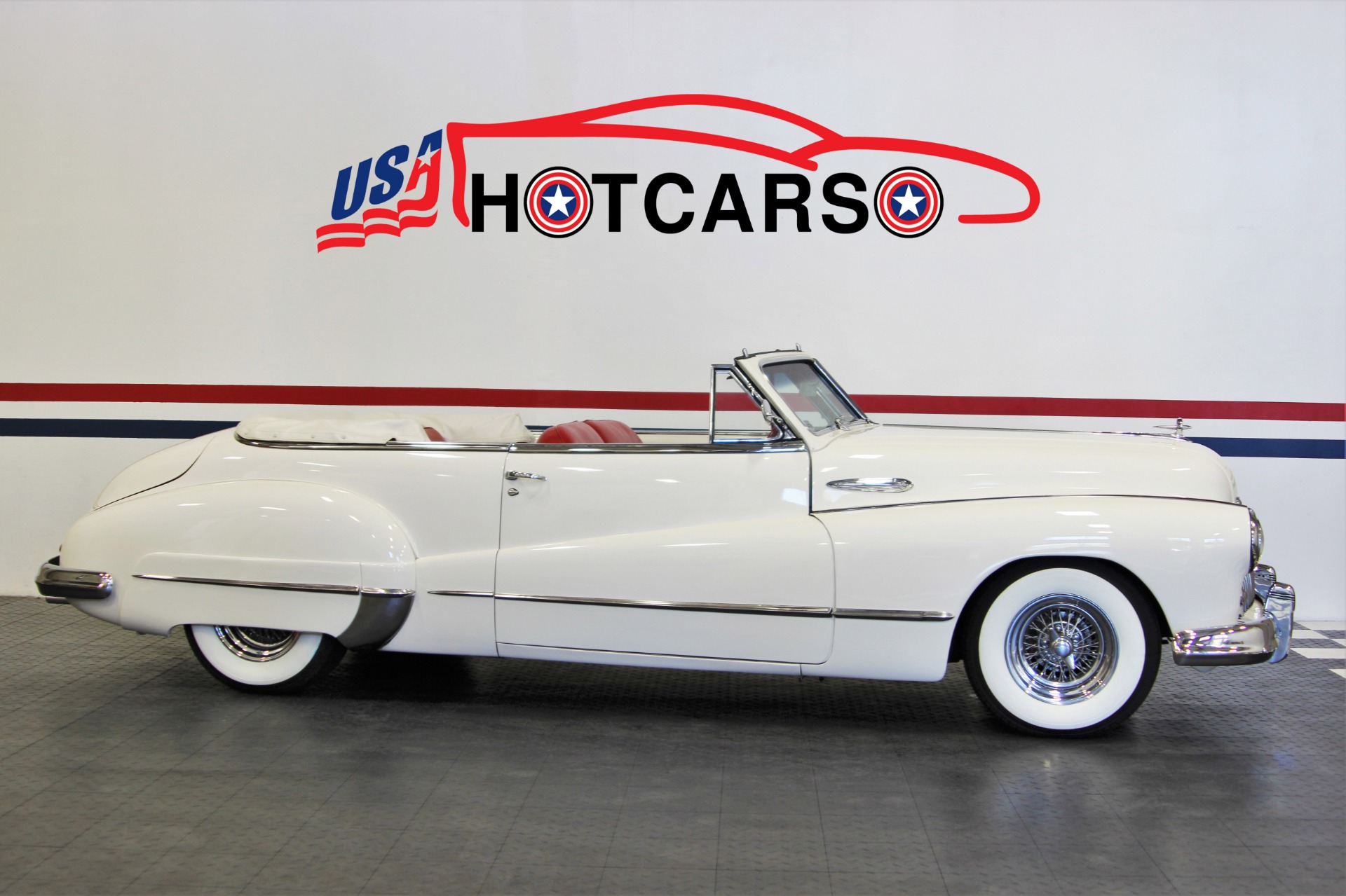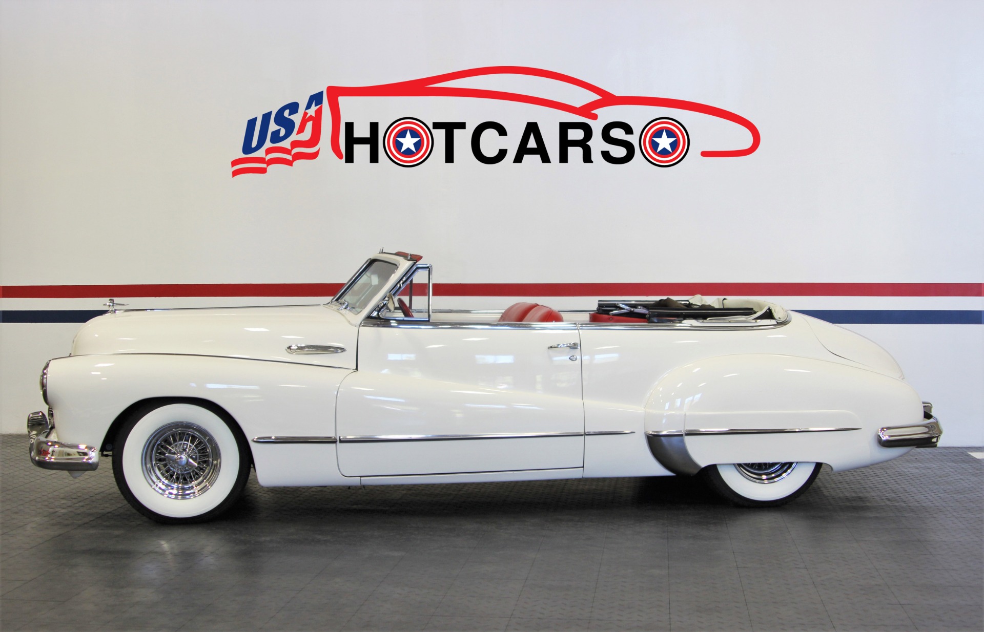 350 CID. Engine. Turbo 400 Automatic Transmission. Chrome Air Cleaner and Valve Covers. Holley 4BBL Carburetor. Edelbrock Aluminum Intake Manifold. Chrome Alternator Brackets. Accel Electronic Ignition. Dual Exhaust. Power Rack and Pinion Steering. Power Front Disc Brakes. 12 Bolt Rear Axle. Red Leather Interior. Tilt Steering Column with Custom 4 Spoke Steering Wheel. Factory Gauges. SW Auxiliary Gauges Under Dash. AM/FM/Cassette Stereo in Glovebox. Power Front Windows. Chrome Wire Wheels. Rear Wheel Skirts. Power Convertible Top with Tonneau Cover. If you are in the market for that special car then come to our showroom in San Ramon, CA. Make your dreams a reality, call the USA Hot Cars Team Today