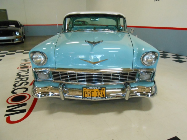 Fantastic 1956 Chevrolet Bel Air 2 Door Hardtop. Upgraded 350 V - 8 engine with 700 R4 automatic transmission. Sanderson Headers. Vintage air conditioning. Power steering. Power front disc brakes. I Did It - tilt steering column with retro steering wheel. AM/FM stereo with cassette player. Upgraded Moon tachometer and gauges. Dual glass pack exhaust. American Racing Mag wheels. Yellow and Black - Vintage California license plates. Car cover and shop manual. Same owner for the past 19 years........ Call us at MY HOT CARS INC. 925-292-0922 or 1-800-900-0227. Email us at: [email protected]. Like us on FACEBOOK and follow us on TWITTER too. MY HOT CARS INC. The Premier Classic and Muscle Car Dealer. For the past 25 years we have been helping customers from all around the world get the car of their dreams. We get RESULTS!!New Inventory Arriving Every Day. www.myhotcars.com