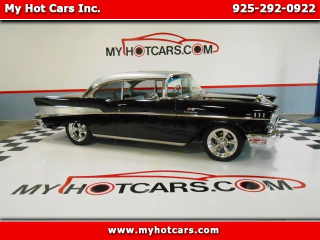 New Arrival, 1957 Chevrolet Bel Air 2 door Hard Top in exceptional condition. Powered by a 327 V - 8 engine with 350 heads, tune port injection. Engine components are all chrome with a serpentine belt system. Aluminum radiator. Vintage Air Conditioning. 700 R4 Automatic transmission. Power steering with 6.05 gear box. Beautiful two-tone leather interior. Tilt steering column. Flowmaster exhaust with cross-over pipe. Glistening chrome and trim. American Racing Mag wheels. Original California car with Black & Yellow license plates. No Disappointments. MY HOT CARS, INC. 925-292-0922 or 1-800-900-0227