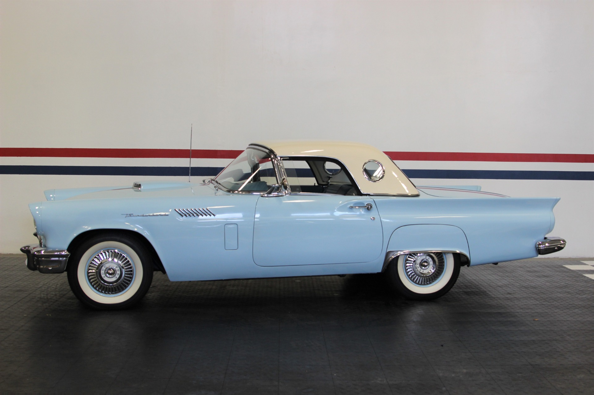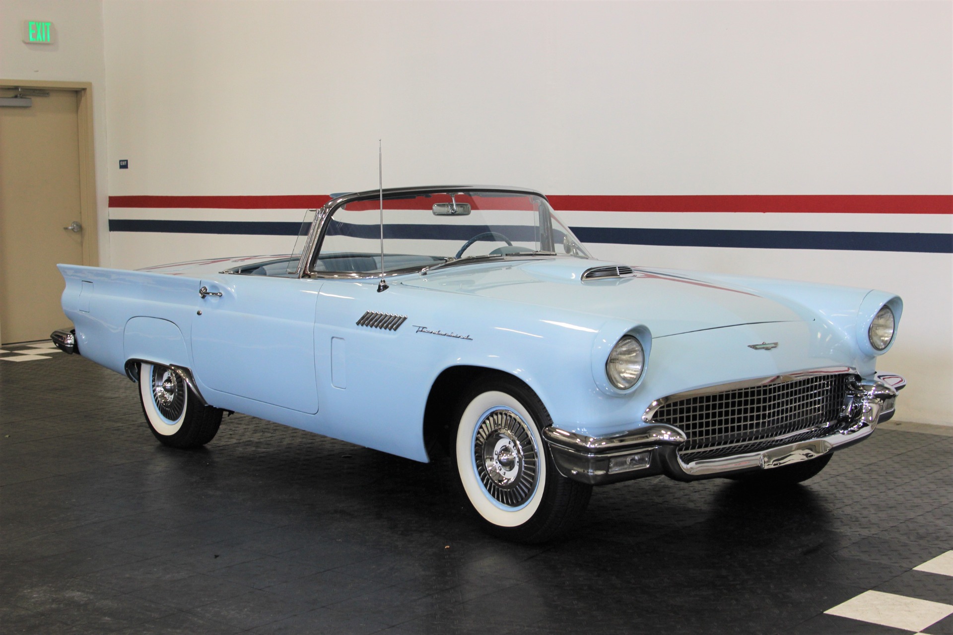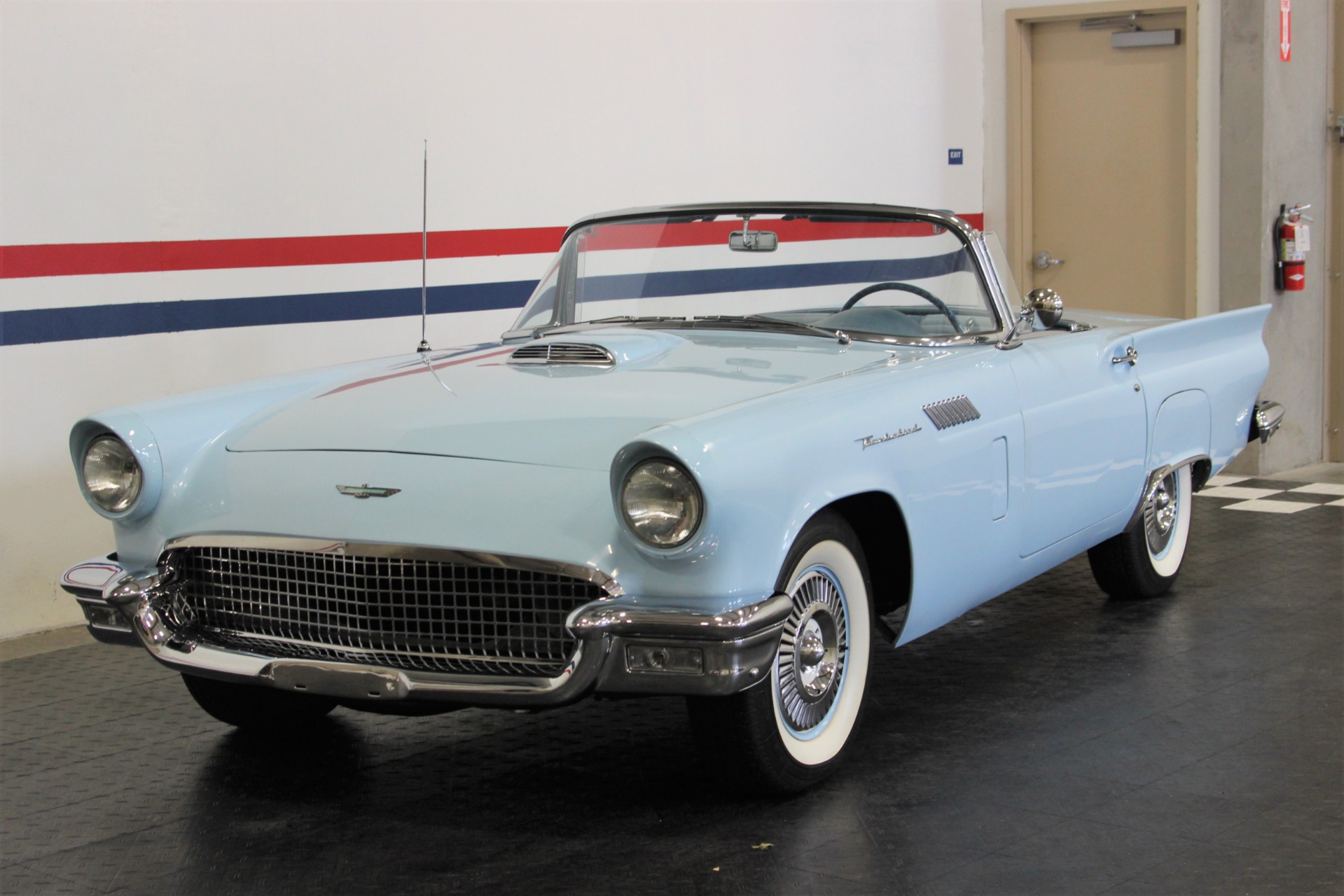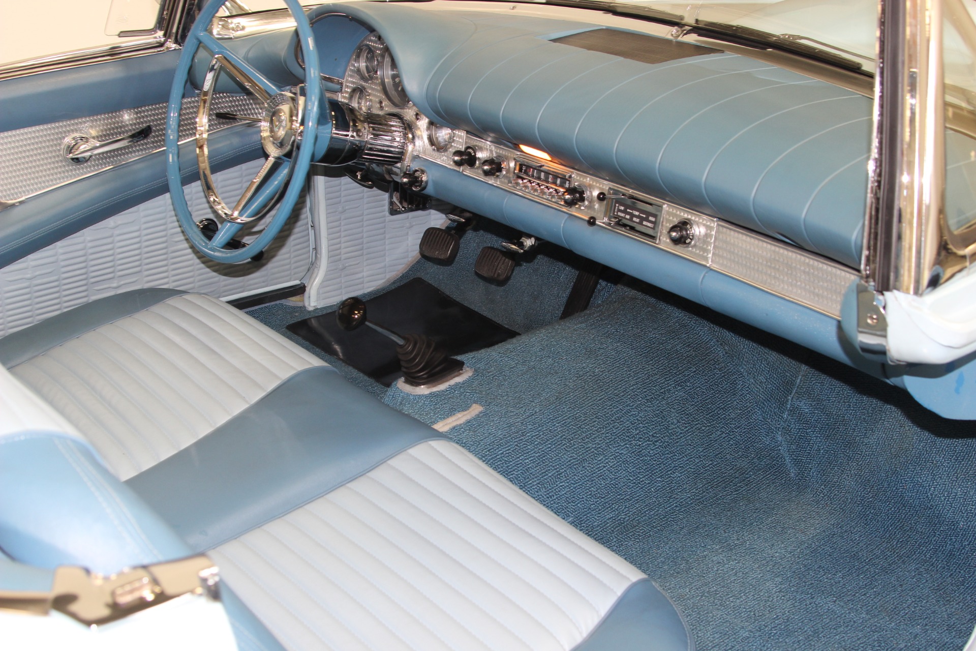 312 CID. Engine. 3 Speed Manual Transmission with Overdrive. Dual 4BBL Carburetors. Chrome Thunderbird Finned Valve Covers. Dual Exhaust. Two Toned Blue Interior. Padded Dashboard. AM/FM Stereo. Factory Spare and Jack. 15 Inch Steel Wheels with Factory Center Caps. Coker White Wall Tires. Only 1449 E Code Thunderbirds Built in 1957. If you are in the market for that special car then come to our showroom in San Ramon, CA. Make your dreams a reality, call the USA Hot Cars Team Today