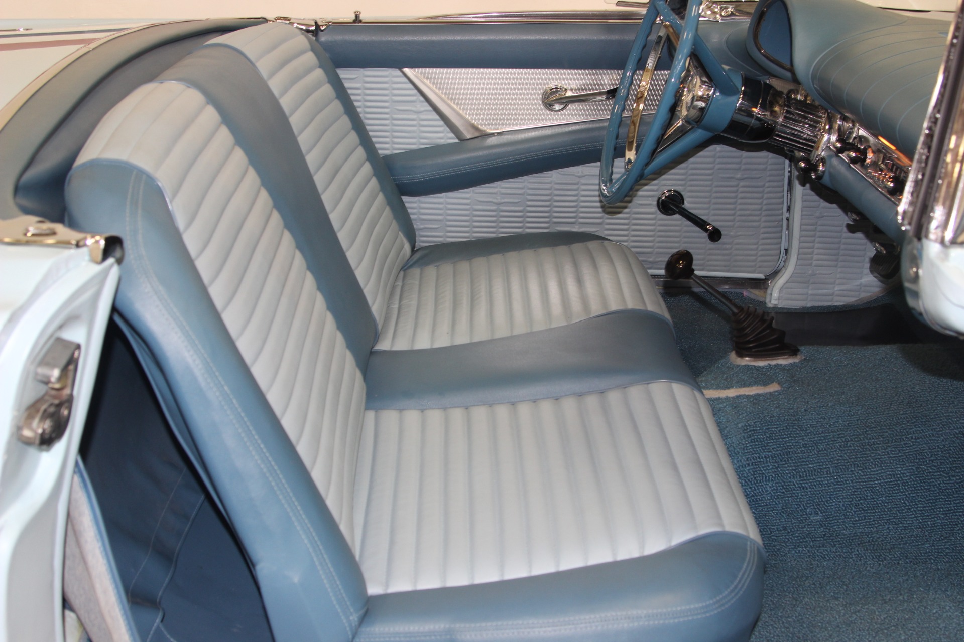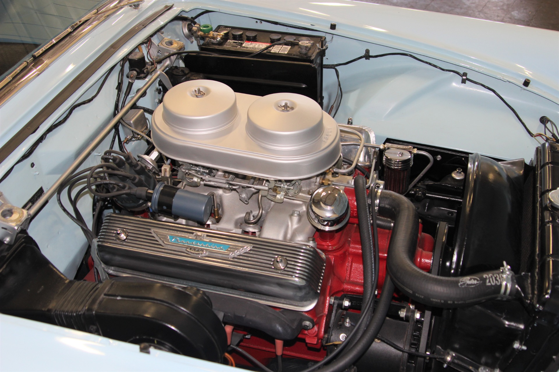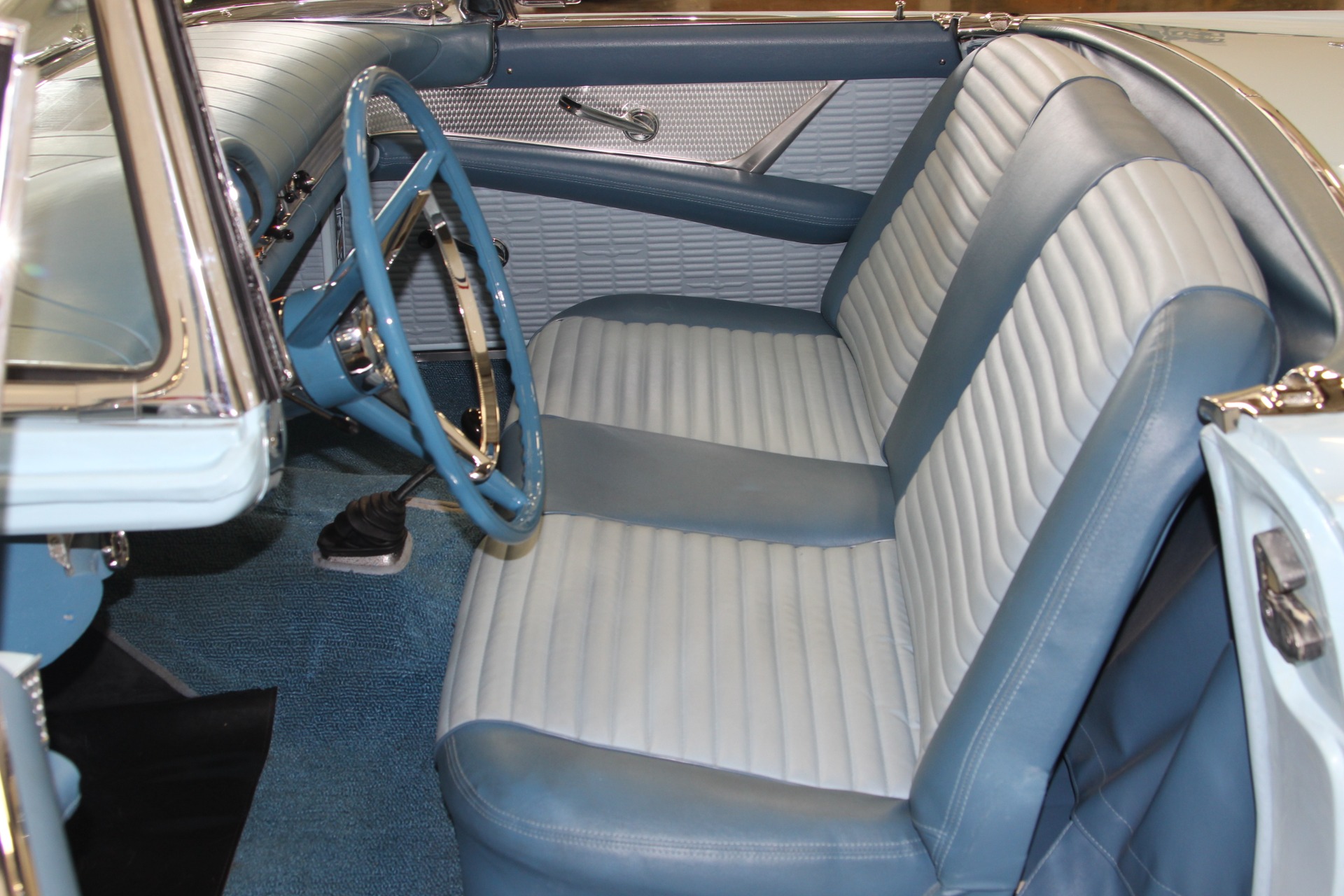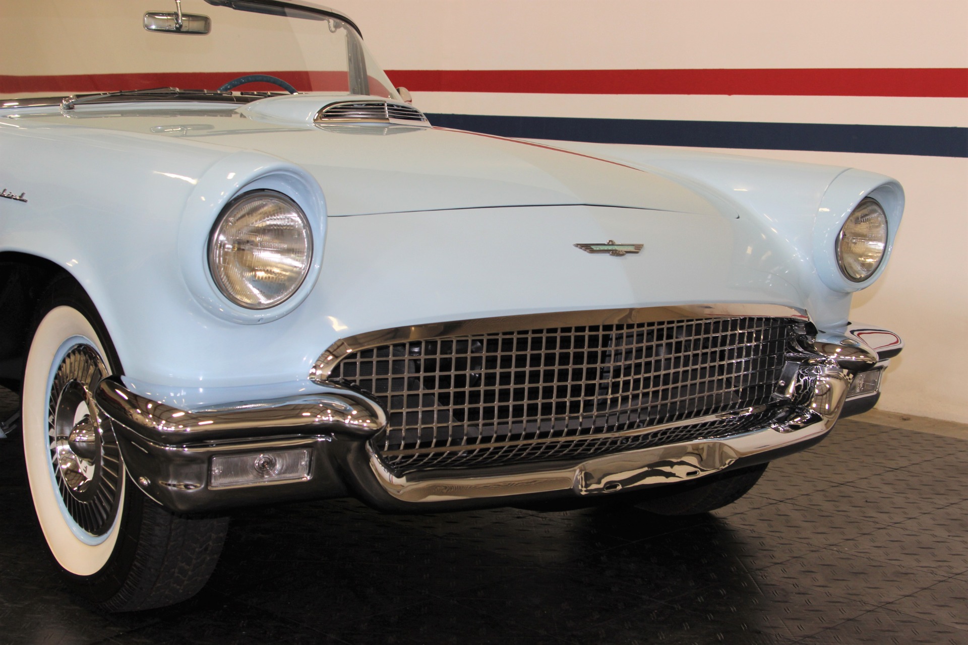 312 CID. Engine. 3 Speed Manual Transmission with Overdrive. Dual 4BBL Carburetors. Chrome Thunderbird Finned Valve Covers. Dual Exhaust. Two Toned Blue Interior. Padded Dashboard. AM/FM Stereo. Factory Spare and Jack. 15 Inch Steel Wheels with Factory Center Caps. Coker White Wall Tires. Only 1449 E Code Thunderbirds Built in 1957. If you are in the market for that special car then come to our showroom in San Ramon, CA. Make your dreams a reality, call the USA Hot Cars Team Today