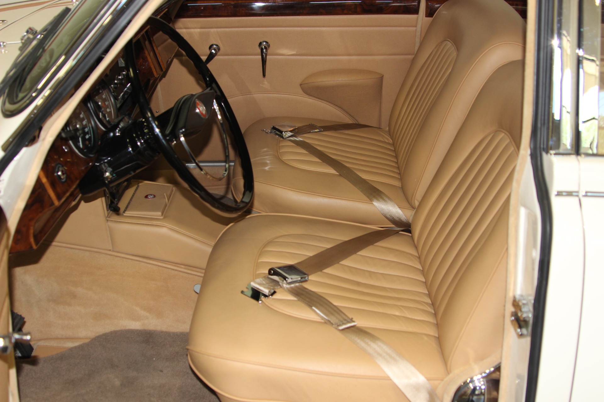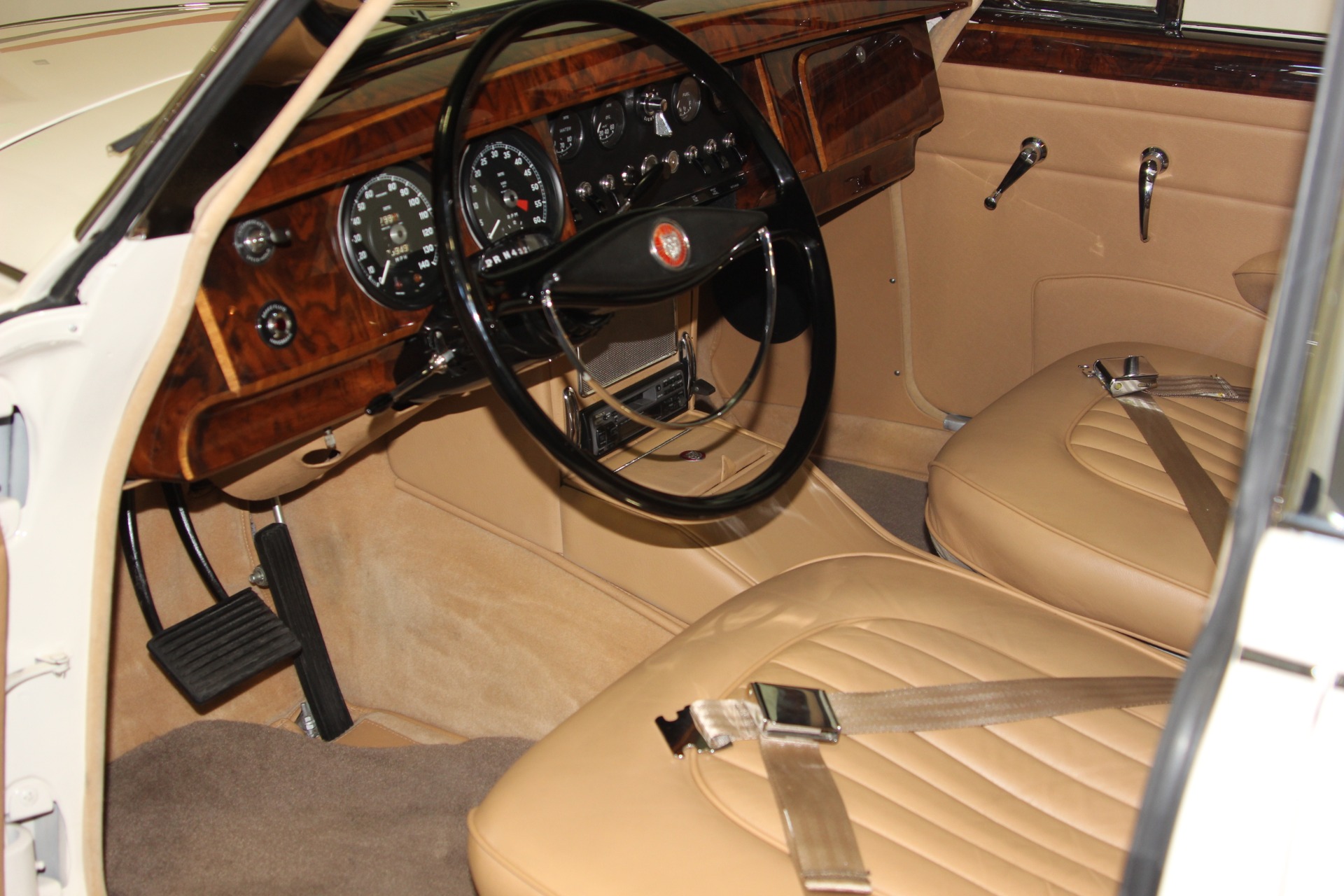 Numbers Matching 3.8L Engine. Correct 3.8L/220HP Cylinder Head. Polished Aluminum Valve Covers. Aluminum Radiator. 700R4 Automatic Overdrive Transmission. Power Steering. Power 4 Wheel Disc Brakes. All Interior Trim and Wood Restored. New Jaguar Leather Interior. Front Bucket Seats with Center Console. Fold Down Rear Arm Rest. Full Instrumentation. Sony AM/FM/Cassette Stereo. Britex Cloth Folding Sunroof. Factory Spare Tire and Jack. Chrome 15 Inch Wire Wheels with Knock Offs. Original Black and Yellow CA License Plates. Complete Frame off Restoration. Less than 2,000 Miles Since Restoration Completed 12 Years Ago. If you are in the market for that special car then come to our showroom in San Ramon, CA. Make your dreams a reality, call the USA Hot Cars Team Today