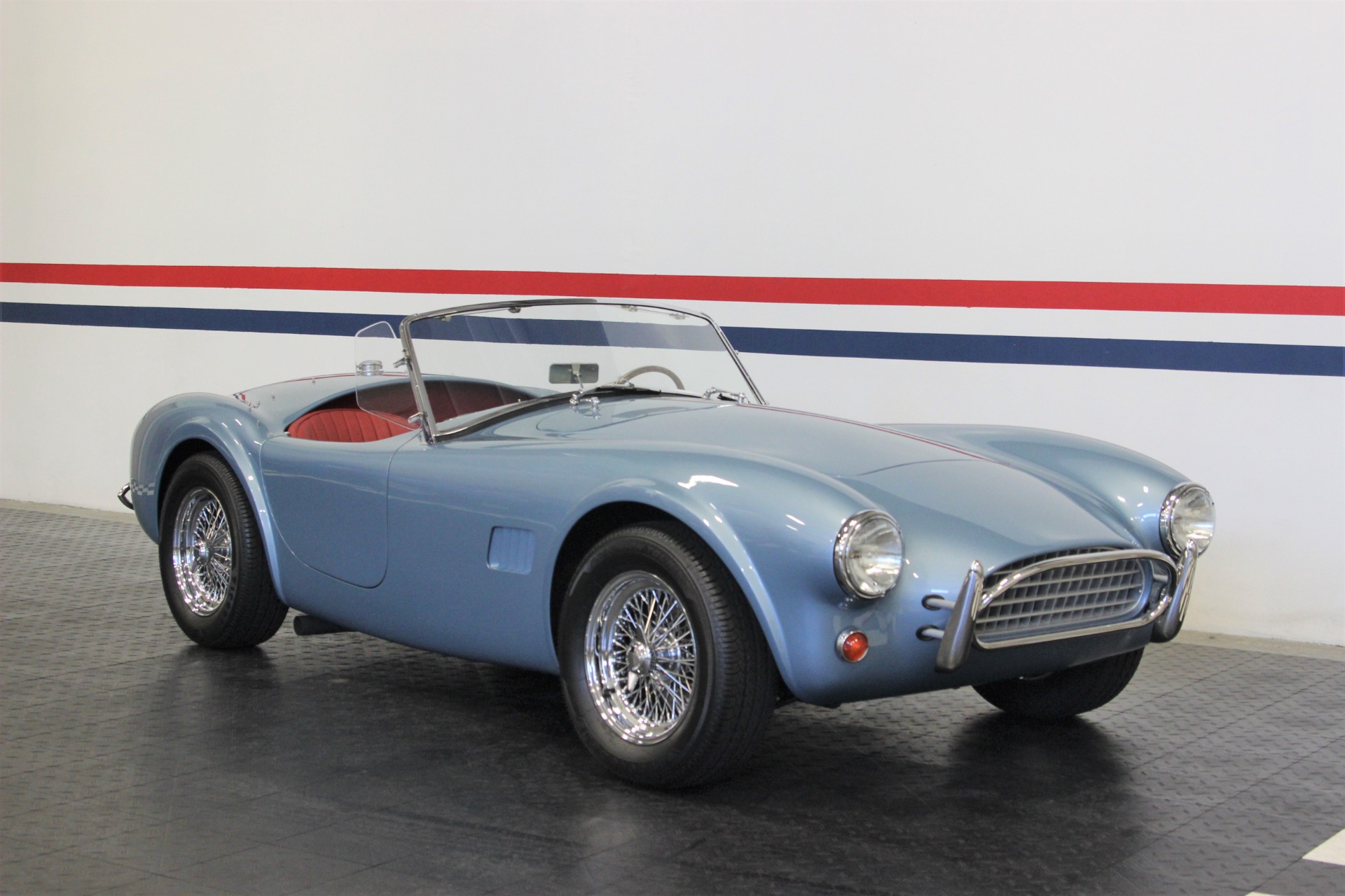 331 CID Stroker Engine. Tremec 5 Speed Transmission. Chrome Air Cleaner. Callies Forged Stroker Crankshaft. SCAT H Beam Rods. Mahle Alloy Pistons. ARP Main and Head Bolts. Hydraulic Roller Camshaft. Shelby AFR Aluminum Heads. Aluminum Intake Manifold. Holley 750 Double Pumper Carburetor. MSD Pro Billet Distributor. Aluminum Valve Covers. Dual Under Car Exhaust System. Aluminum Radiator with Electric Puller Fan. 4 Wheel Independent Suspension. 3.54 Rear End Gears. Rack and Pinion Steering. 4 Wheel Shelby Racing Disc Brakes. Leather Interior Upgrade. 3 Spoke Aluminum Cobra Steering Wheel with Wood Grip. Original Styled SW Gauge Package. Driver and Passenger DJ Safety Harnesses. Shelby Embroidered Floor Mats. Heater/Defroster with Fresh Air Vents. Front and Rear Chrome Bumpers. Chrome 72 Spoke 15"" Knock Off Wheels. New Firestone Tires. If you are in the market for that special car then come to our showroom in San Ramon, CA. Make your dreams a reality, call the USA Hot Cars Team Today