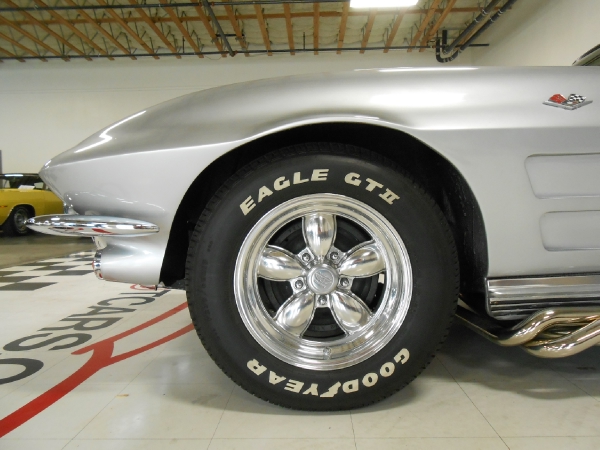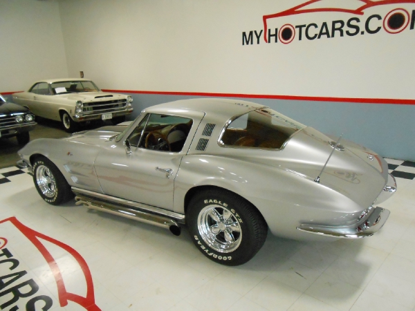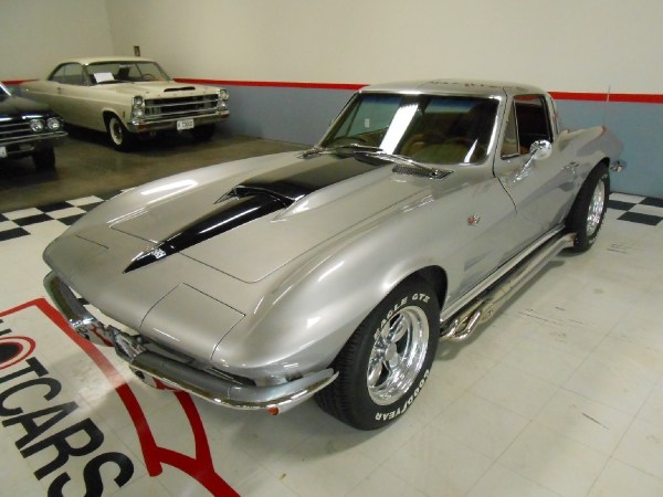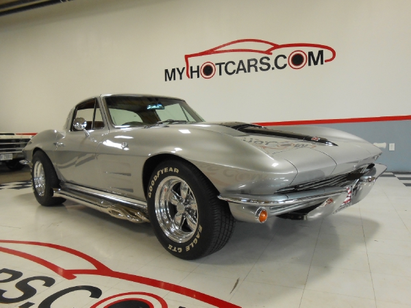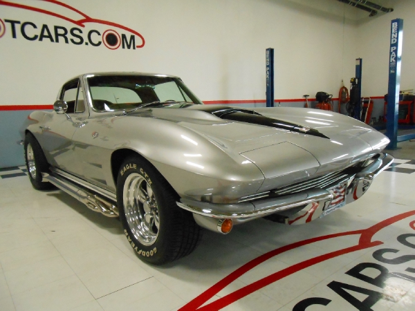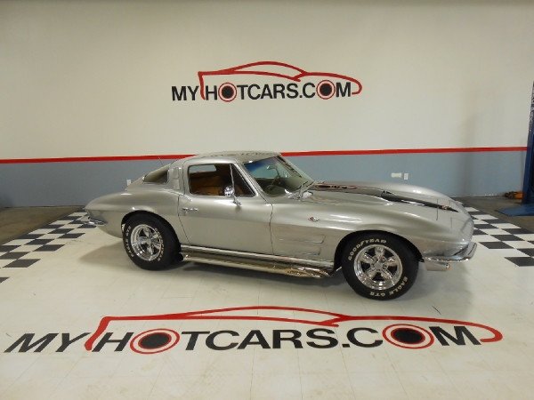 My Hot Cars is excited to offer this 1964 Corvette Stingray Coupe in Silver Pearl trimmed with Saddle Interior for a limited time. This car is built with a crate 350 V-8 motor, backed up by its Muncie 4-Speed Manual transmission with Hurst linkage putting the power to the ground with its 3:08 Posi-Traction rear end. As you look down the side you will see tastefully flared front and rear fenders making the custom side pipe exhaust. The 1967 Stinger Hood complete with stripe package gives this car an aggressive look driving down the road. Car is sitting on American Racing mag's wrapped in 60's series GoodYear Tires. The BeCool radiator with electric fan, MSD ignition, and Holley Carburetor are some of the few additional upgrades and performance items. Underneath this car was done for driving purposes giving you new trailing arms, rear wheel bearing, tie rods, new front springs, shocks and bushings. Please do not hesitate as we have this car on a short leash for a limited time. Call today!!