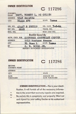 - Original Chevrolet Owner's Guide.